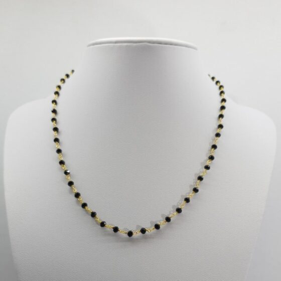 Ασημένιο 925 κολιέ ροζάριο, επιχρυσωμένο με μαύρους κρυστάλλους