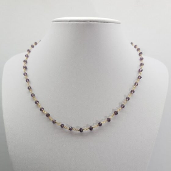 Ασημένιο 925 κολιέ ροζάριο, επιχρυσωμένο με μωβ κρυστάλλους