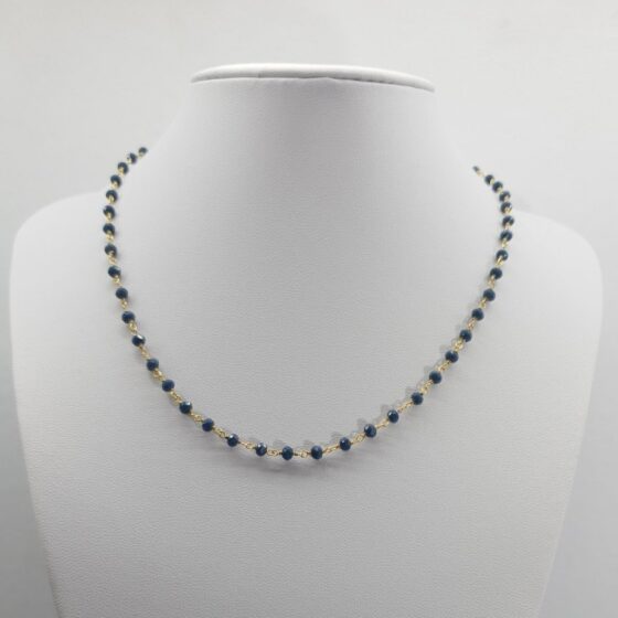 Ασημένιο 925 κολιέ ροζάριο, επιχρυσωμένο με petrol κρυστάλλους