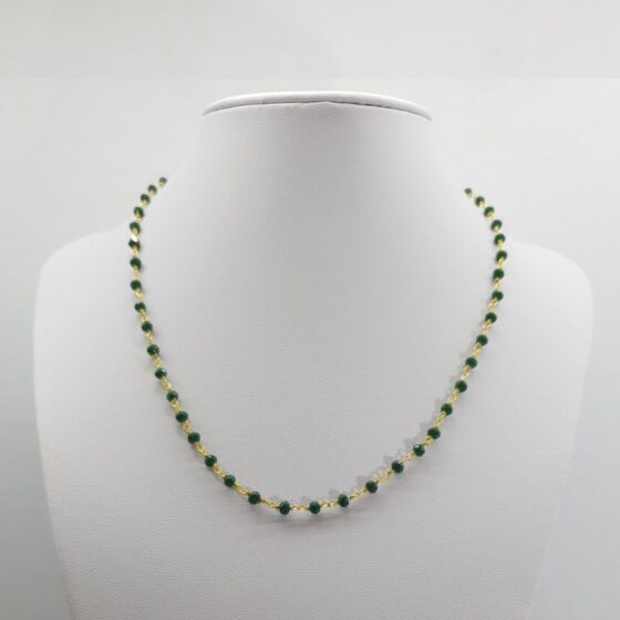 Ασημένιο 925 κολιέ ροζάριο, επιχρυσωμένο με πράσινους κρυστάλλους