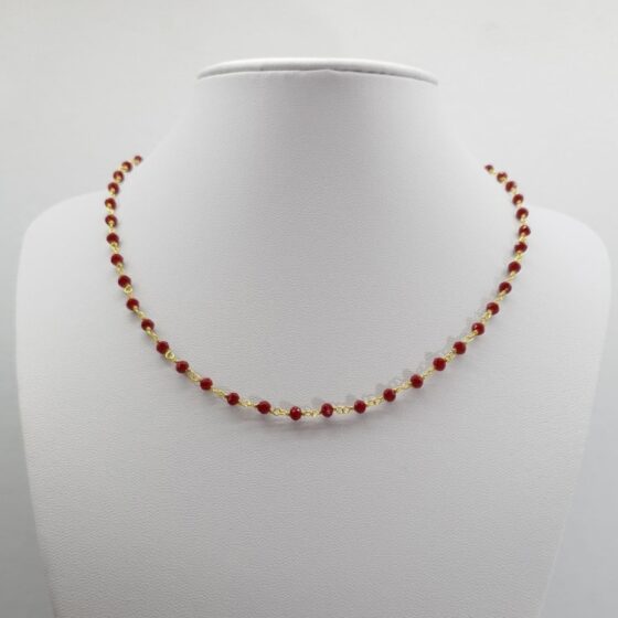 Ασημένιο 925 κολιέ ροζάριο, επιχρυσωμένο με κόκκινους κρυστάλλους