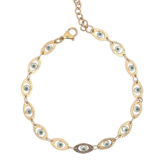 Υλικό : STAINLESS STEEL ΕΠΙΧΡΥΣΩΜΕΝΟ Βραχιόλι με πράσινα ματάκια