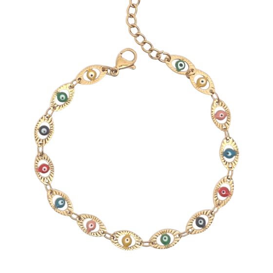 Υλικό : STAINLESS STEEL ΕΠΙΧΡΥΣΩΜΕΝΟ Βραχιόλι με πολύχρωμα ματάκια