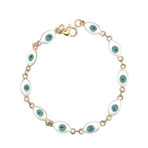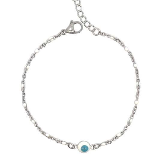 Υλικό : STAINLESS STEEL Βραχιόλι με άσπρες πέτρες και μάτι