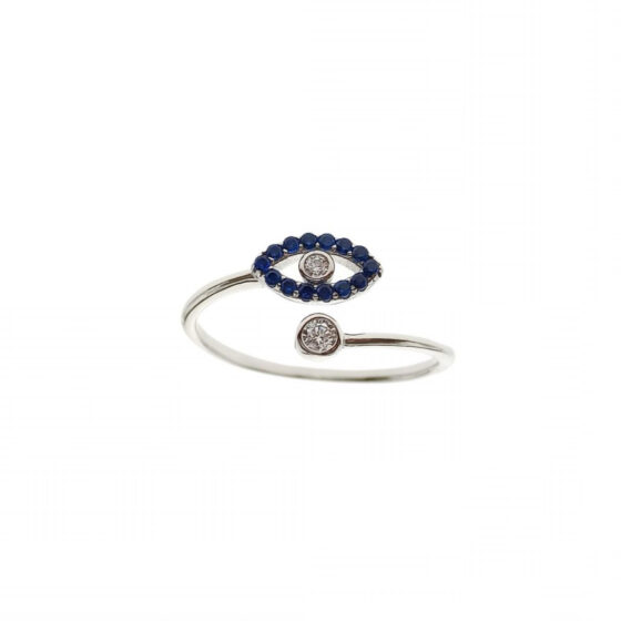 Υλικό: Ασήμι 925 Size: Ρυθμιζόμενο (Adjustable) Δαχτυλίδι με μπλε μάτι και ζιργκόν