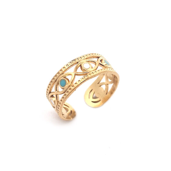 Υλικό: STAINLESS STEEL ΕΠΙΧΡΥΣΩΜΕΝΟ Size: Ανοιγόμενο / Open end Δαχτυλίδι με τιρκουάζ σμάλτο