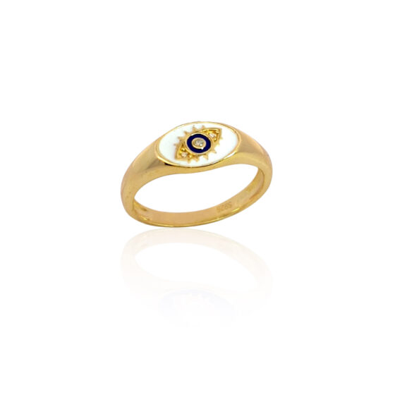 Υλικό : Ασήμι Επιχρυσωμένο 925 Size: EU 58 (Ανοιγόμενο / Open End) Δαχτυλίδι μπλε μάτι με άσπρο σμάλτο και ζιργκόν