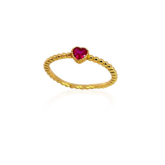 Υλικό : Ασήμι Επιχρυσωμένο 925 Size: EU 54 {Ρωτήστε για διαθέσιμα sizes} Δαχτυλίδι με κόκκινο ζιργκόν σε σχήμα καρδούλας
