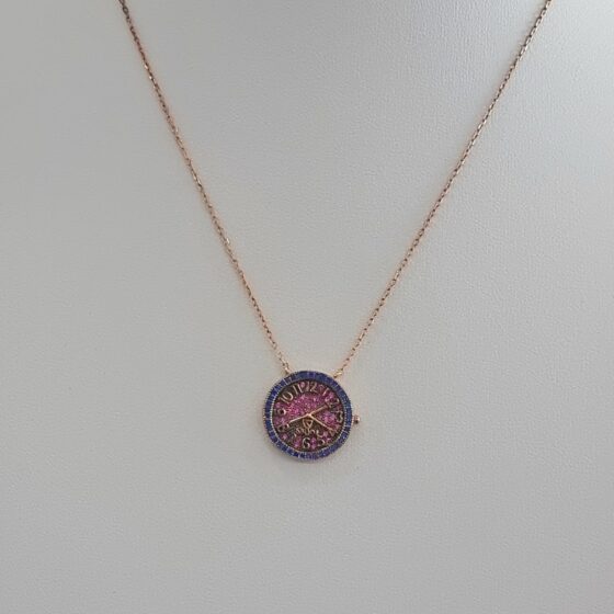 Ένα κομψό rose gold κολιέ με ενσωματωμένο ρολόι που αναδεικνύει τη γοητεία του χρώματος και επικεντρώνεται στην κομψή σχεδίαση. Η λιτότητα του κοσμήματος προσφέρει διακριτική και εκλεπτυσμένη εμφάνιση, ενώ το ρολόι προσθέτει λειτουργικότητα με στυλ. Κολιέ 925 – Επικάλυψη Rose Gold