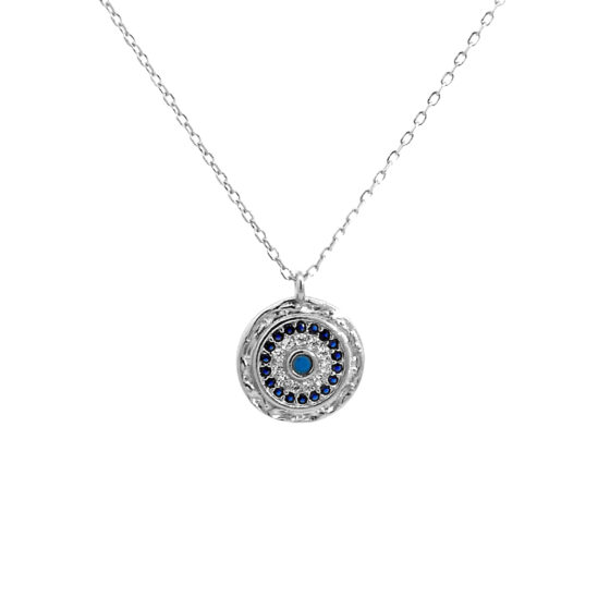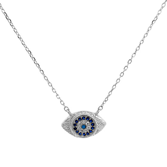 Υλικό : Ασήμι 925 Κολιέ με μπλε μάτι και ζιργκόν