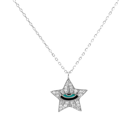 Υλικό : Ασήμι 925 Κολιέ αστέρι με μπλε μάτι και ζιργκόv