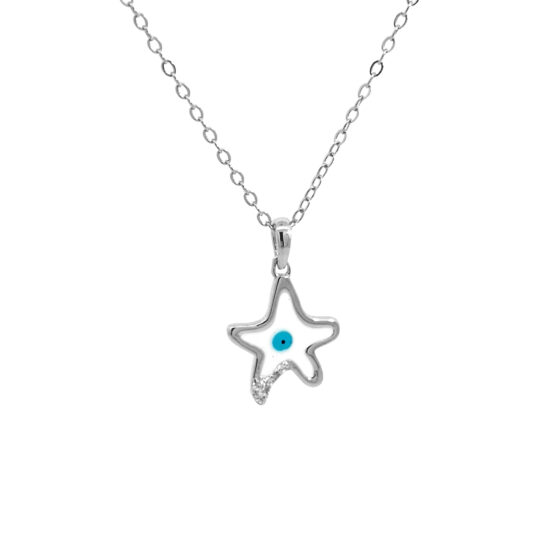 Υλικό : Ασήμι 925 Κολιέ αστερίας με ματάκι και ζιργκόν