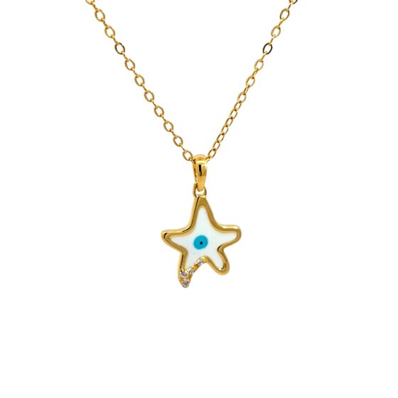Υλικό : Ασήμι Επιχρυσωμένο 925 Κολιέ αστερίας με ματάκι και ζιργκόν