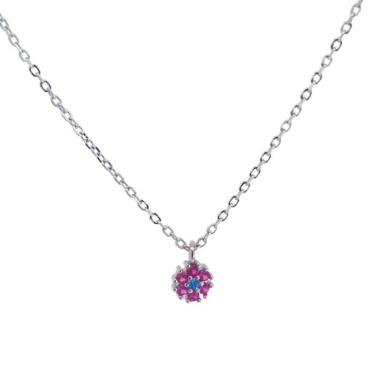 Υλικό : Ασήμι 925 Κολιέ λουλούδι με μπλε και ροζ ζιργκόν