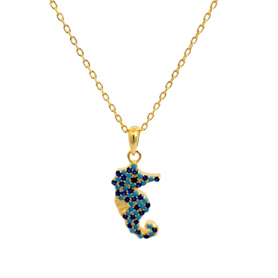 Υλικό : Ασήμι Επιχρυσωμένο 925 Κολιέ ιππόκαμπος με χρωματιστά ζιργκόν