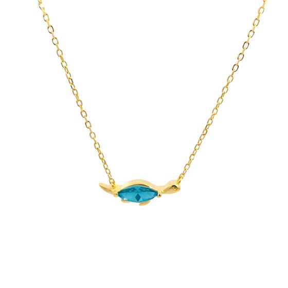 Υλικό : Ασήμι Επιχρυσωμένο 925 Κολιέ χελώνα με τιρκουαζ ζιργκόν