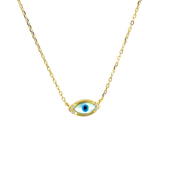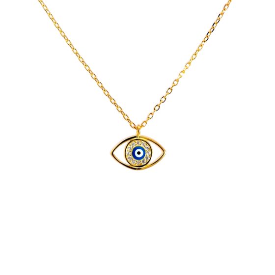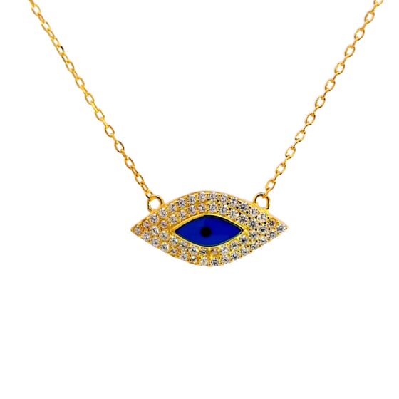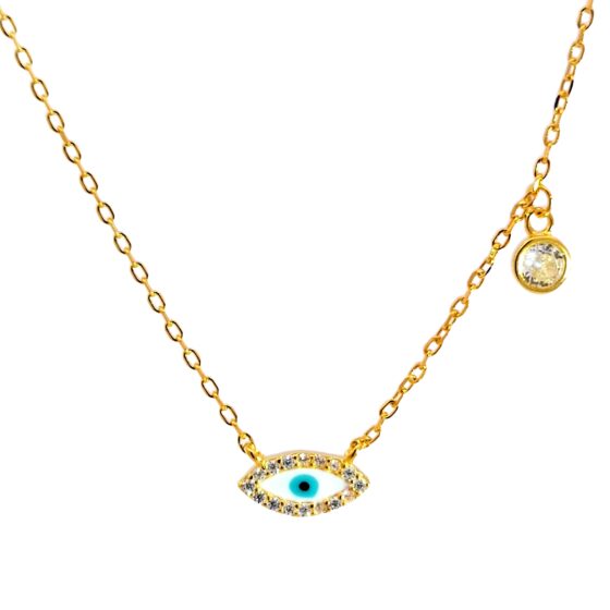 Υλικό : Ασήμι Επιχρυσωμένο 925 Κολιέ με μπλε ματάκι και ζιργκόν