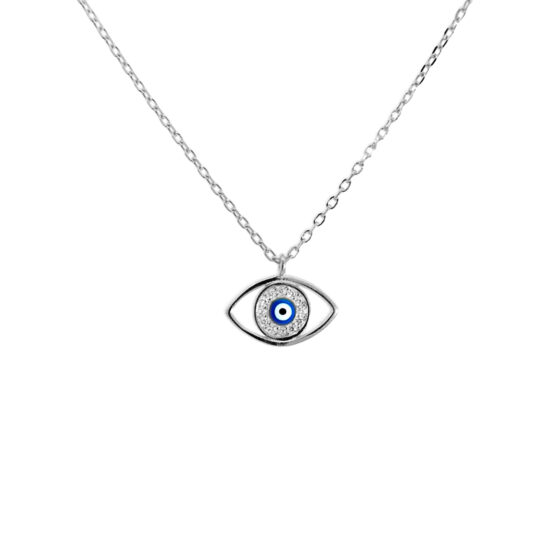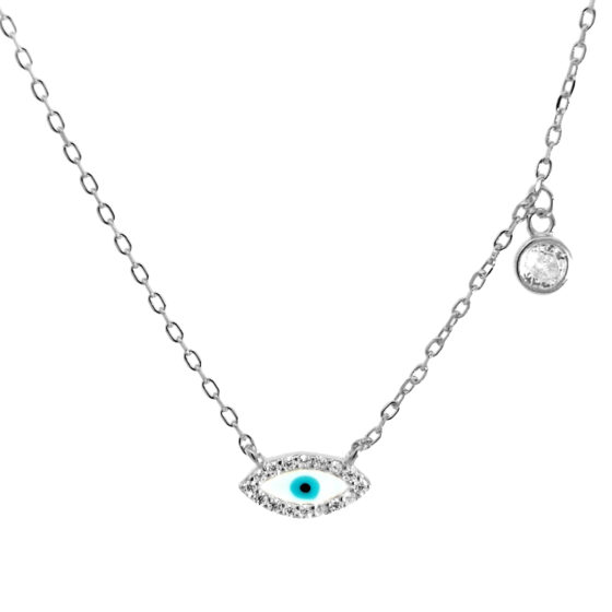 Υλικό : Ασήμι 925 Κολιέ με μπλε ματάκι και ζιργκόν