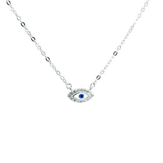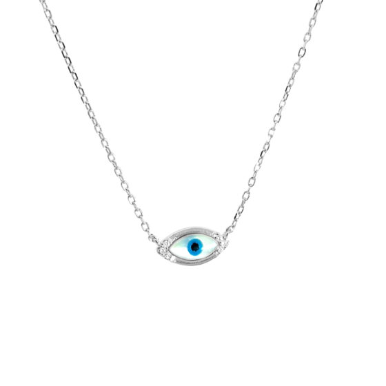 Υλικό : Ασήμι 925 Κολιέ με μπλε ματάκι και ζιργκόν