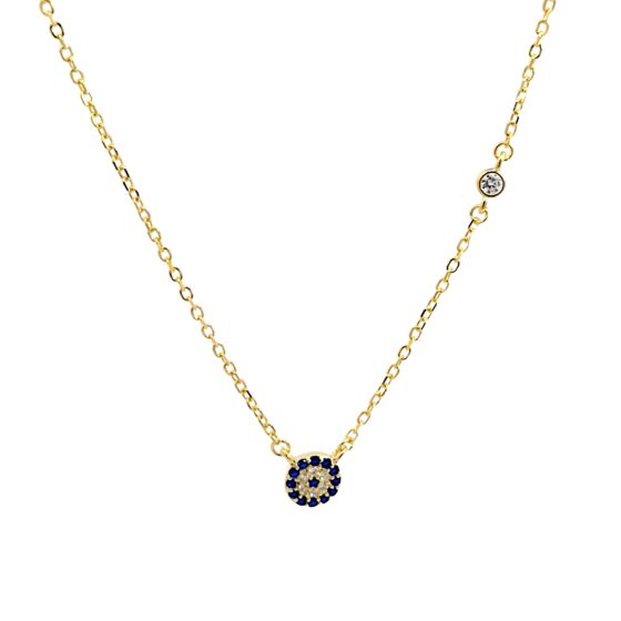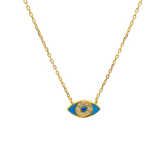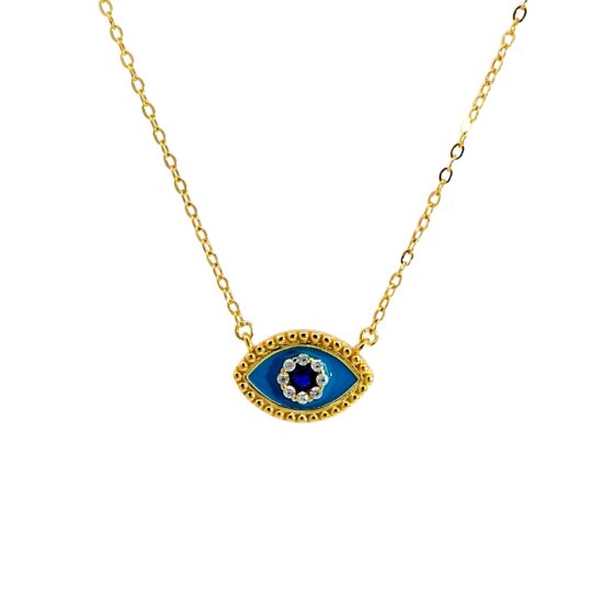 Υλικό : Ασήμι Επιχρυσωμένο 925 Κολιέ με μπλε ματάκι και ζιργκόν