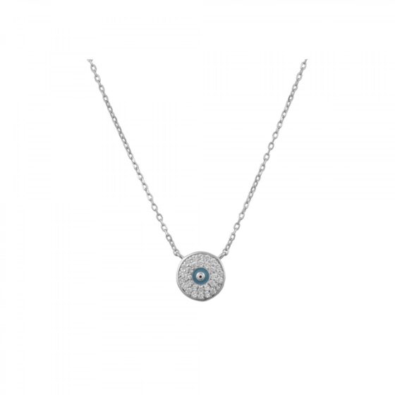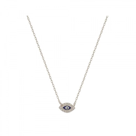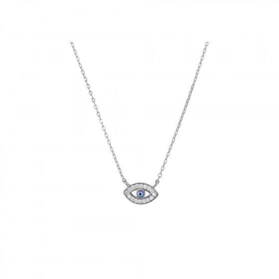 Υλικό : Ασήμι 925 Κολιέ με μπλε ματάκι και ζιργκόν