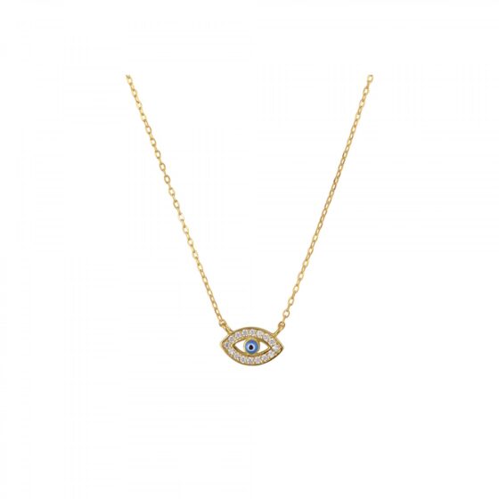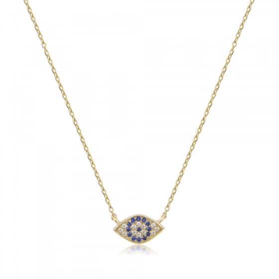 Υλικό : Ασήμι Επιχρυσωμένο 925 Κολιέ με μπλε ματάκι και ζιργκόν