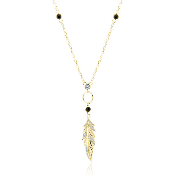 Υπέροχo γυναικείo κολιέ boho με κρύσταλους ζιργκόν σε σχήμα φτερού από ασήμι 925. Επιχρυσωμένο 14Κ Δαστάσεις : 50-55cm Μέγεθος κρεμαστού φτερού : 32mm x 10mm