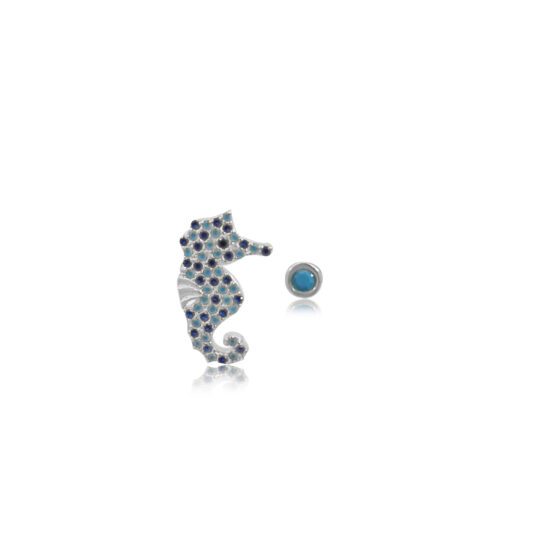 Υλικό : Ασήμι 925 Σκουλαρίκια ιππόκαμπος με μπλε και γαλάζια ζιργκόν