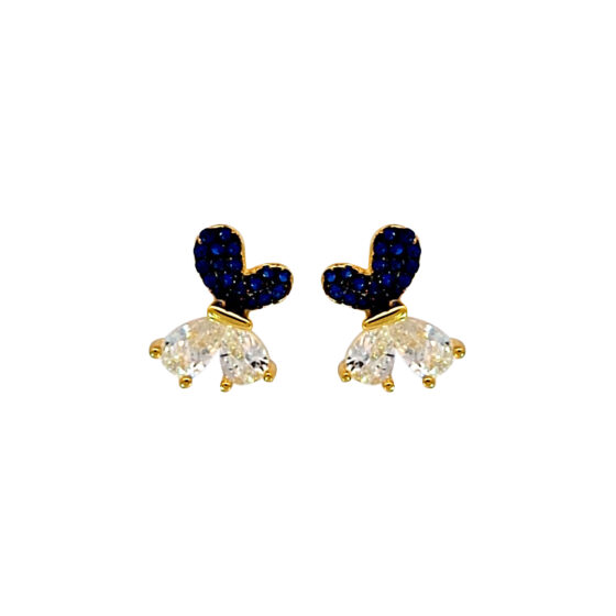 Υλικό : Ασήμι Επιχρυσωμένο 925 Σκουλαρίκια πεταλούδα με άσπρα και μπλε ζιργκόν
