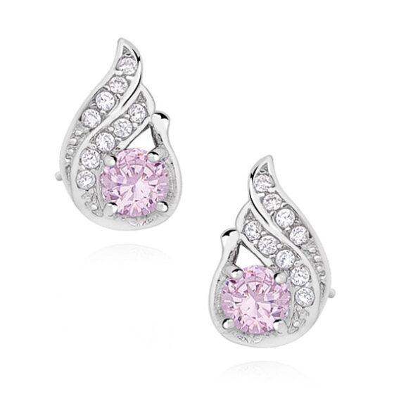 Carolyn - Ασημένια Σκουλαρίκια (925) με Ροζ Ζιργκόν