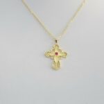 Σταυρός σε βυζαντινό στύλ με συνθετική πέτρα στο χρώμα του ρουμπινιού