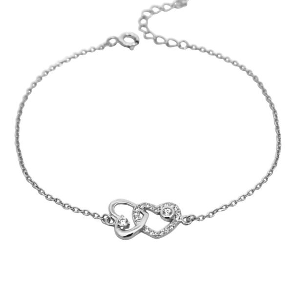 Υλικό : Ασήμι 925 Βραχιόλι δύο καρδούλες με ζιργκόν