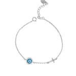 Βραχιόλι μάτι μπλε με ζιργκόν και Σταυρό