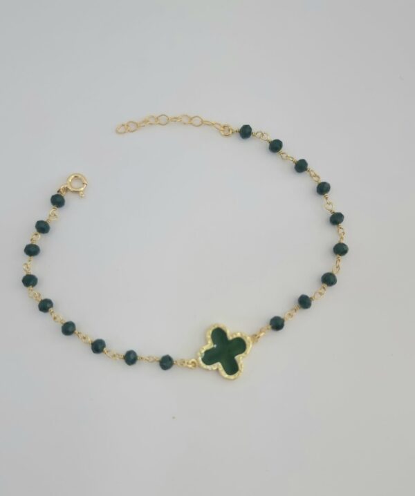 Υλικό : ΑΣΗΜΙ 925 ΕΠΙΧΡΥΣΩΜΕΝΟ ΒΡΑΧΙΟΛΙ ΡΟΖΑΡΙΟ ΜΕ ΠΡΑΣΙΝΕΣ ΠΕΤΡΕΣ ΚΑΙ VAN CLEEF