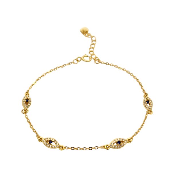 Υλικό : Ασήμι Επιχρυσωμένο 925 Βραχιόλι με ματάκια μπλε και ζιργκόν