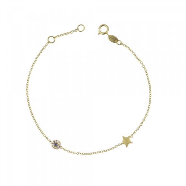 Υλικό : Ασήμι Επιχρυσωμένο 925 Βραχιόλι αστεράκι με ματάκι και ζιργκόν