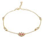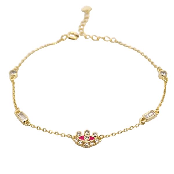 Βραχιόλι ροζ μάτι με σμάλτο και ζιργκόν