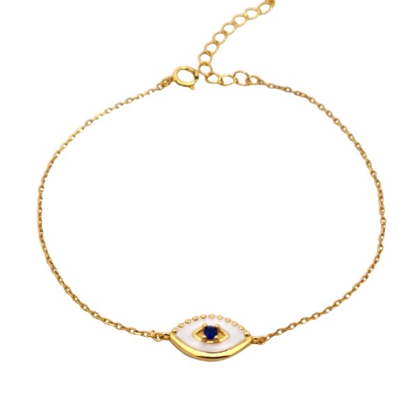 Βραχιόλι άσπρο μάτι με σμάλτο και μπλε ζιργκόν