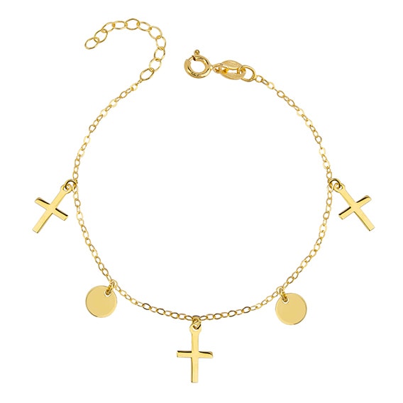 Υλικό : Ασήμι 925 – Eπιχρυσωμένο Διαστάσεις κρεμαστού: Σταυρός 13mm x 9,5mm – Δίσκος : 6mm Mήκος Αλυσίδας : 16-19cm