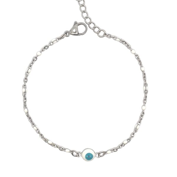 Υλικό : STAINLESS STEEL Βραχιόλι με άσπρες πέτρες και μάτι