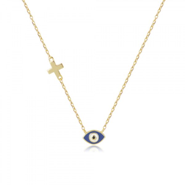 Κολιέ μπλε ματάκι με Σταυρουδάκι