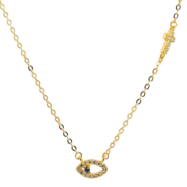 Κολιέ μπλε ματάκι με Σταυρουδάκι και ζιργκόν