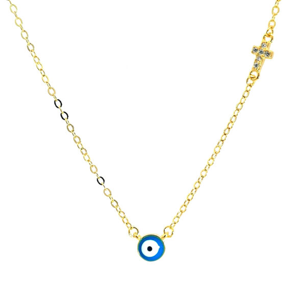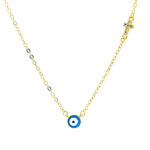Κολιέ μπλε ματάκι με Σταυρουδάκι και ζιργκόν
