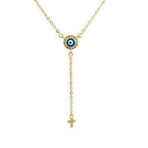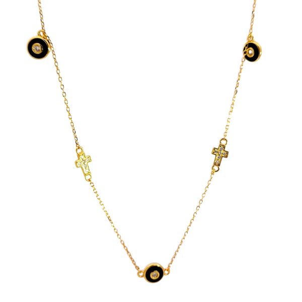 Υλικό : Ασήμι Επιχρυσωμένο 925 Κολιέ μαύρα ματάκια με Σταυρουδάκια και ζιργκόv