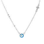 Υλικό : Ασήμι 925 Κολιέ μπλε ματάκι με Σταυρουδάκι και ζιργκόν