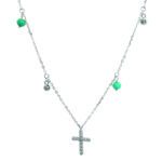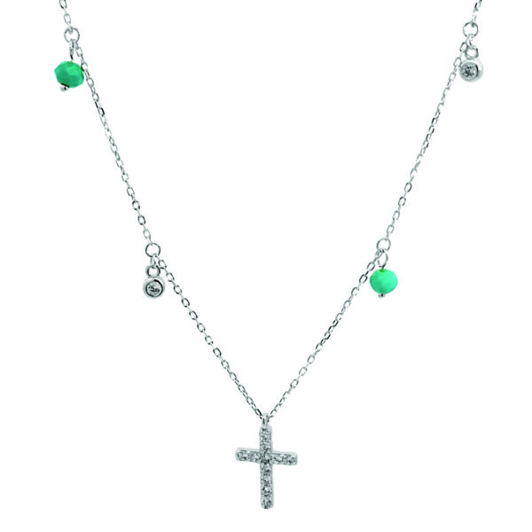 Υλικό : Ασήμι 925 Κολιέ Σταυρουδάκι με ζιργκόν και τιρκουάζ μπίλιες