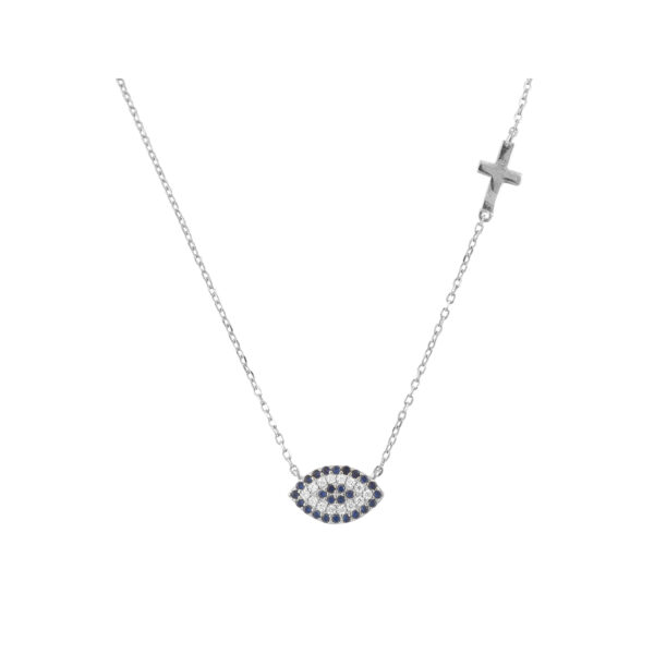 Κολιέ μπλε ματάκι με Σταυρουδάκι και ζιργκόν