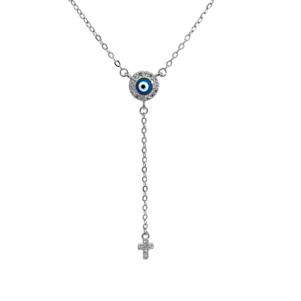 Κολιέ μπλε ματάκι με Σταυρουδάκι και ζιργκόν