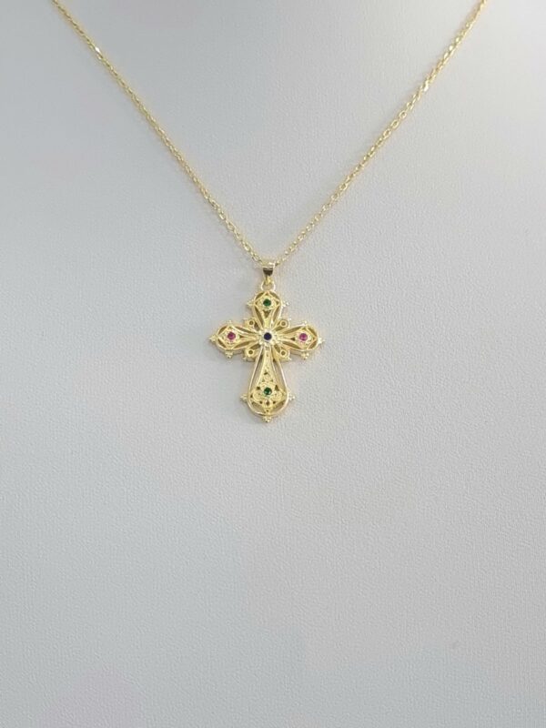 Σταυρός σε βυζαντινό στύλ με συνθετικές χρωματιστές πέτρες