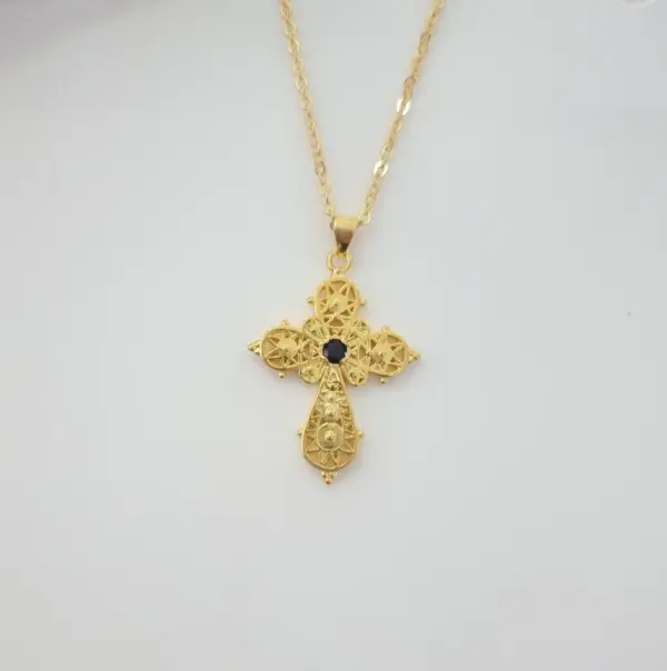 Σταυρός Βυζαντινό στυλ με μαύρο ζιργκόν
